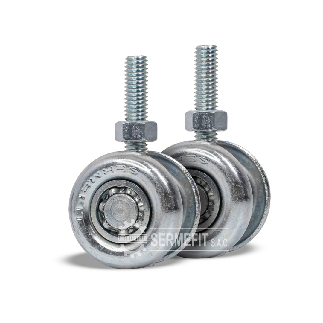 Descripción: Sistema corredizo colgante, fabricado en acero calibrado con norma ASTM AISI 1018 con billas insertadas en el eje y la rueda con alta precisión. Con una estructura robusta y un diseño ergonómico, esta garrucha ofrece un funcionamiento suave y eficiente.